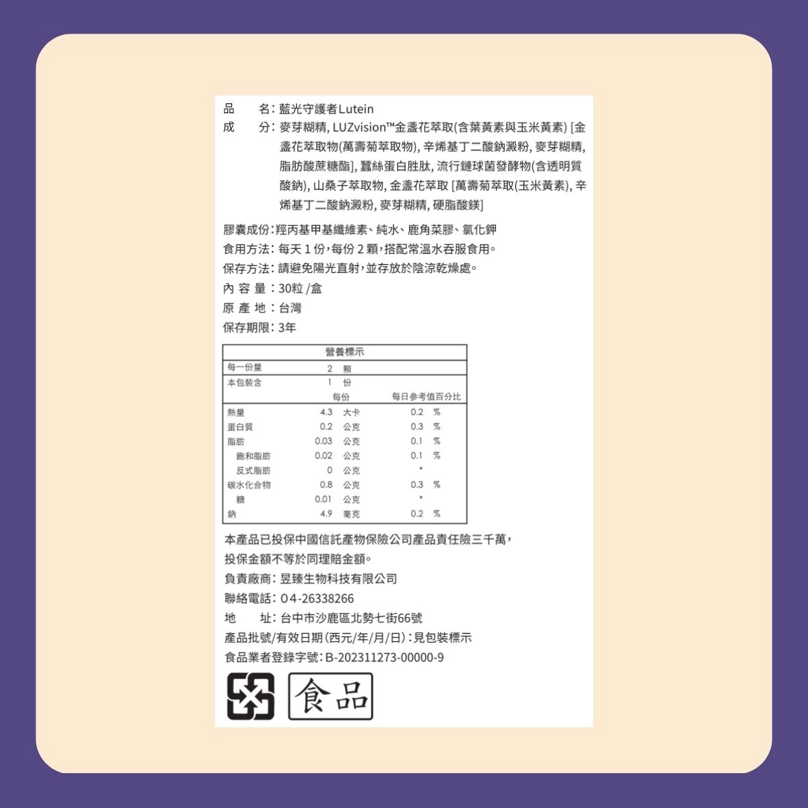 1. 黃金比例葉黃素與玉米黃素
