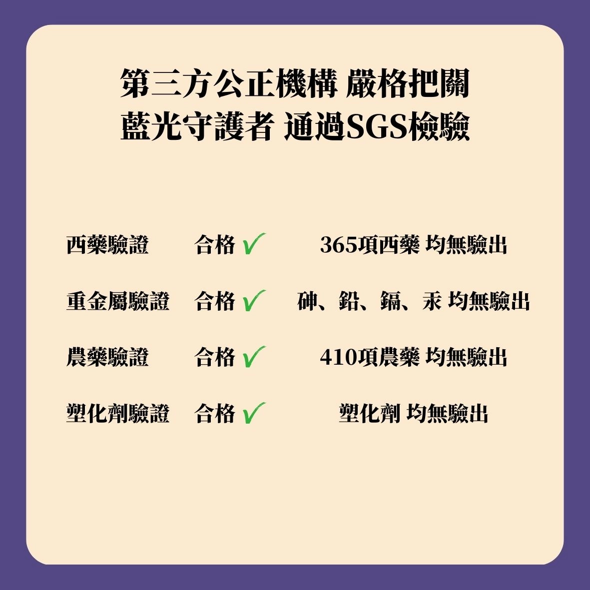 我們僅使用具備臨床實驗支持的國際專利原料,並通過第三方公正機構檢驗(如 SGS),確保無重金屬殘留、無西藥成分,天天補充無負擔。
