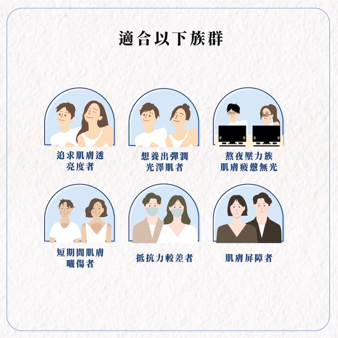 - 熟齡保養族: 希望維持肌膚淨透度,預防歲月痕跡者。