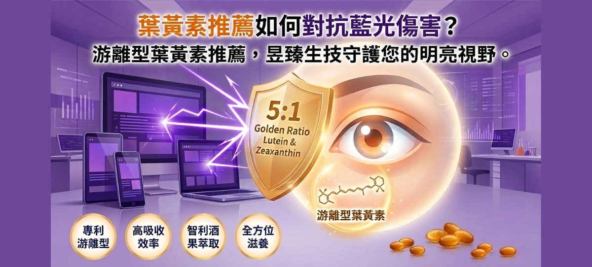 葉黃素推薦如何對抗藍光傷害?2026 游離型葉黃素推薦,昱臻生技守護您的明亮視野。